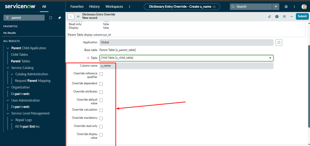 Dictionary Override will come into a picture when we have a parent-child relationship between tables. By default, all fields and their attributes are inherited from parent table to child tables. Suppose you want to make a difference in one of the child tables for inherited fields then we will go for Dictionary override.