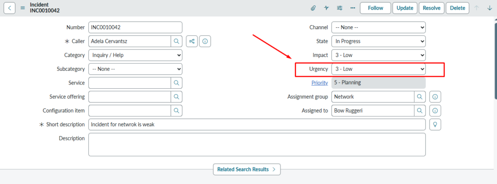 Three levels of urgency are given in the list box that are High, Medium, and Low as per the incident type.