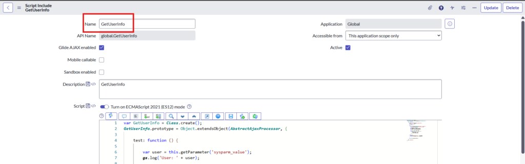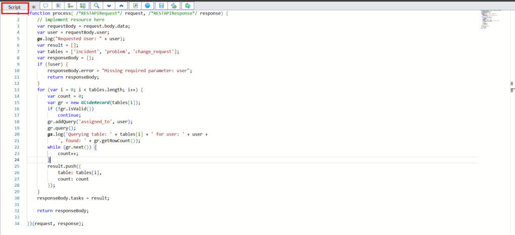 This script will fetch the user that is selected on the catalog item, calls the REST message we have created in instance A, and whatever response we get from instance B, script will fetch assignment details for the user.